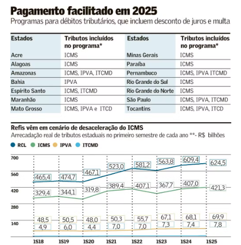 Para especialistas e representantes dos Estados, os programas, além de beneficiar contribuintes que buscam regularização, ajudam a arrecadação num momento em que há receio de desaceleração da economia e são naturalmente esperados, tendo em vista as eleições em 2026.